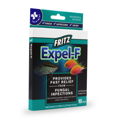 Fritz Expel-F is a powerful and safe anti-fungal medication designed to treat true fungal infections in both freshwater and saltwater aquariums. Ideal for combating infections like Ichthyophonus hoferi and Saprolegnia, it targets white, cotton-like growths commonly found on the body, mouth, or fins of infected fish. Fungal infections are often secondary to previous wounds or injuries and can quickly spread without proper treatment.