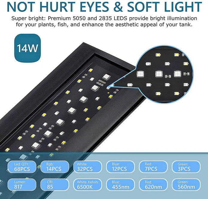 Full Spectrum Lighting: Perfect for a wide range of aquatic environments, providing natural light to promote plant growth and enhance fish colors.