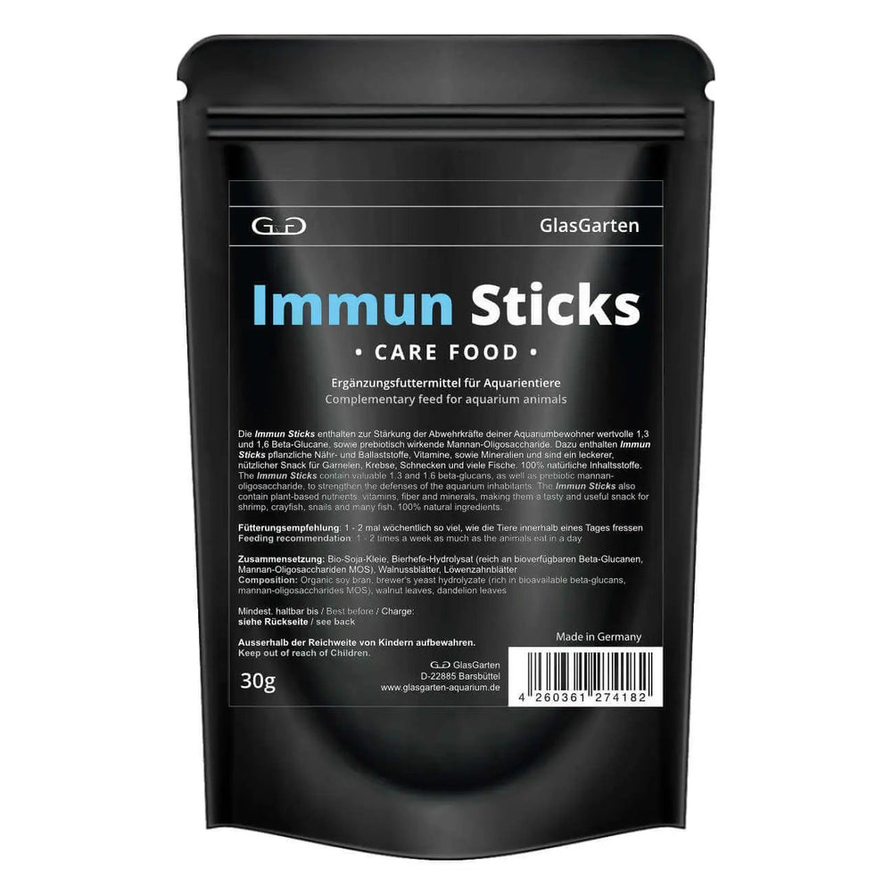 GlasGarten Care Food combines nutrition and wellness in one, giving your shrimp, snails, crayfish, and aquarium fish a delicious, health-boosting treat. Whether you're looking to enrich your water with humic substances or support your livestock's immune system, Immun Sticks deliver everything your tank needs for long-term vitality.