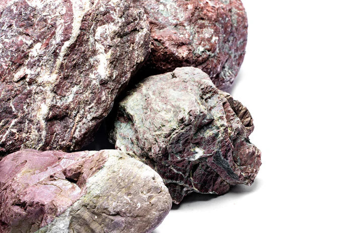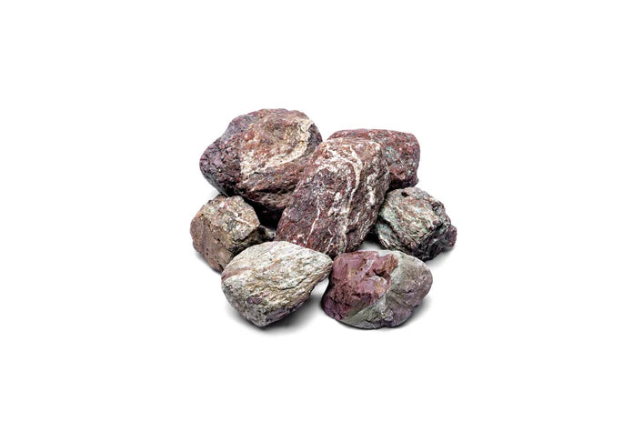 Joro Stone showcases rich purple-red tones, accentuated by striking grey and cream streaks, offering a distinctive look for aquascapers in search of something unique. This stone is perfect for those who wish to add depth and color contrast to their aquascapes.
