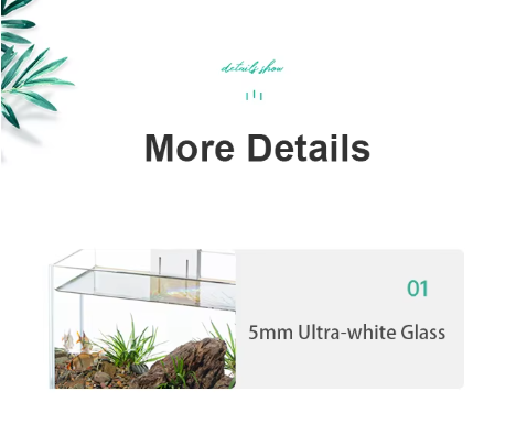 High-transparency glass offers a stunning, uninterrupted view of your aquascape or aquatic pets.