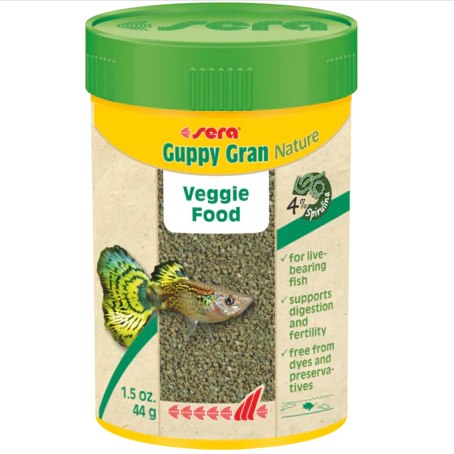 Give your guppies and other active swimmers the wholesome, plant-based diet they deserve with sera Guppy Gran Nature — for a healthy, happy, and vibrant aquarium.